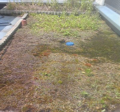 そのわけは、このテラス菜園は、ウレタン防水加工の上に直接、土が敷かれていたことにあります。そして前日の大雨・・・そう!もともと水はけを考えずに後から作られた菜園は水をびっしりと溜め込んでいたのです。