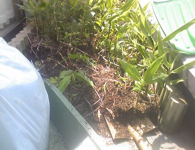 そして、今日2階と3階からおろした草交じりの土の総重量は1トン以上にたっしていたのです。指が動きません・・写真まで斜めです(笑)・・今日の書き込みはここまでといたします・・・