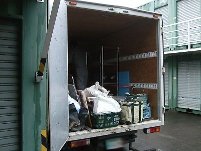 今回は、階段下に車両が止められたことも手伝って約1時間半で積載終了です。隙間無く詰め込まれた物を運び出すにはこの位の時間を要します。今回は生活用品というより仕事の道具や関連品を現場で処分できず一時保管したというような状況で不用品の処分と移動は半々といったところです。さて、お車でお越しのお客様は一足先にご自宅に、後を追って移動品を運搬していきます。